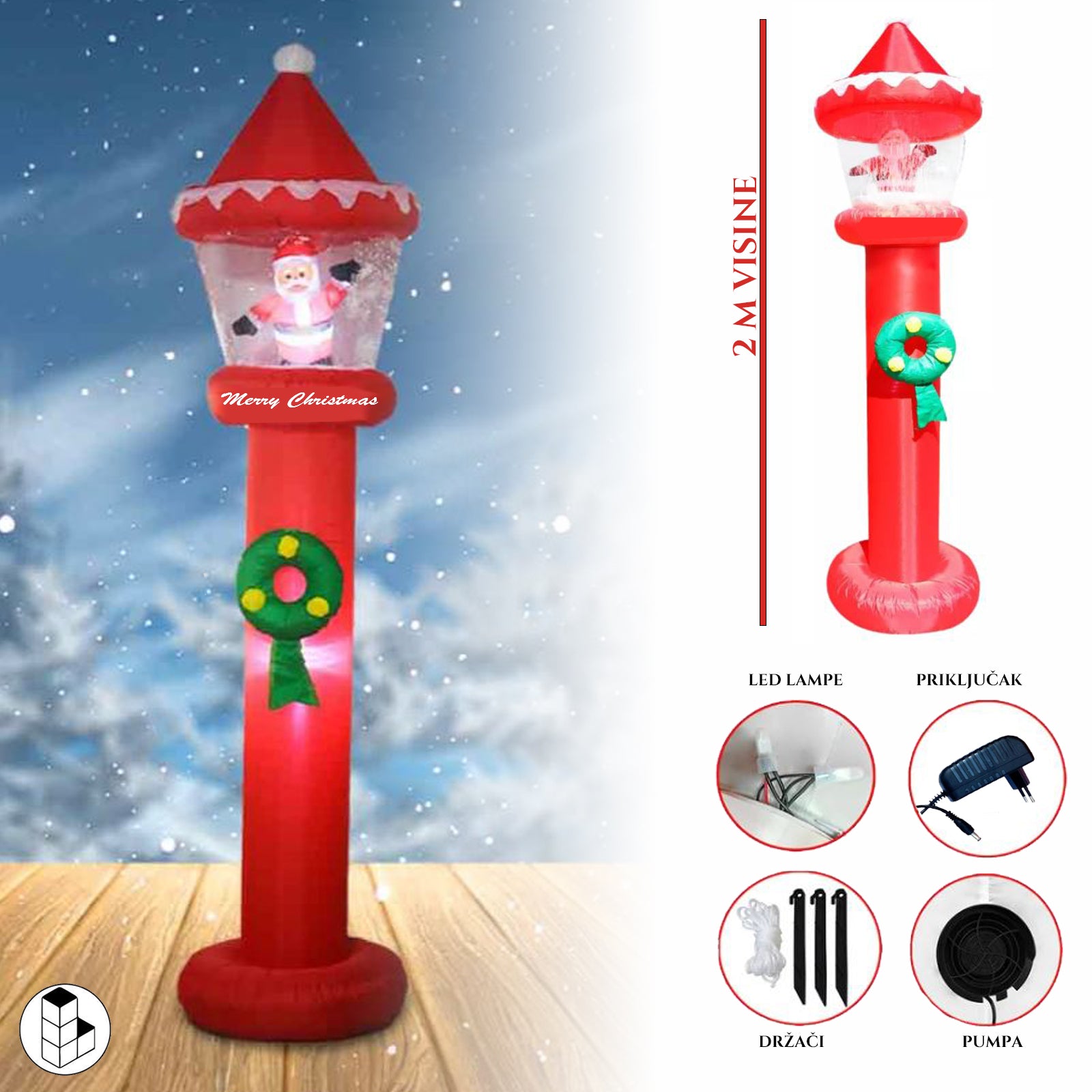 Unesite čaroliju u svoj dom ove blagdanske sezone s našom ukrasnom lampom na napuhavanje visine 2 metra! ✨ Ovaj impresivan ukras savršen je za ukrašavanje vašeg vrta, dvorišta ili unutrašnjeg prostora. Njena veličina osigurava da će privlačiti pažnju svih koji prolaze pokraj vašeg doma! 🏡