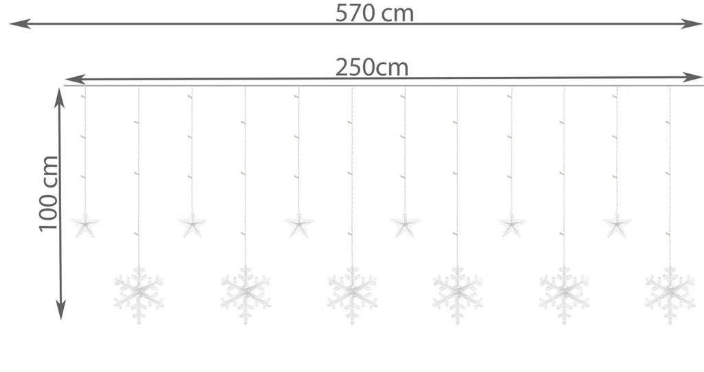 Unesite čaroliju blagdana u svoj dom s ovim prekrasnim božićnim svjetlima! 🌟 Naša svjetla sadrže 126 bijelih LED dioda koje stvaraju očaravajuću atmosferu, a dolaze s 6 malih zvijezda ✨ i 6 velikih snježnih pahulja ❄️.