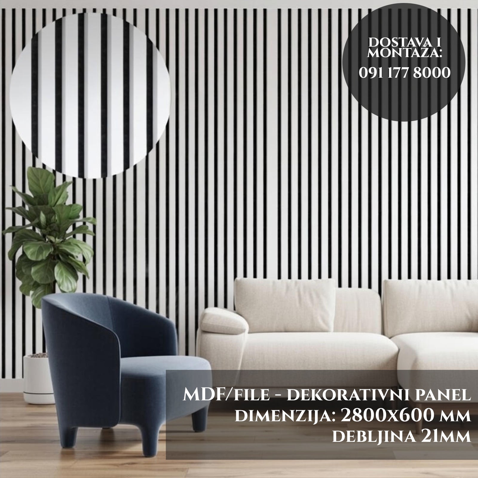 Izrađen od visokokvalitetnog MDF-a presvučenog specijalnom Snow-finish folijom koja je otporna na otiske prstiju i lako se održava. Crna podloga od filca pruža savršen kontrast bijelim letvicama.