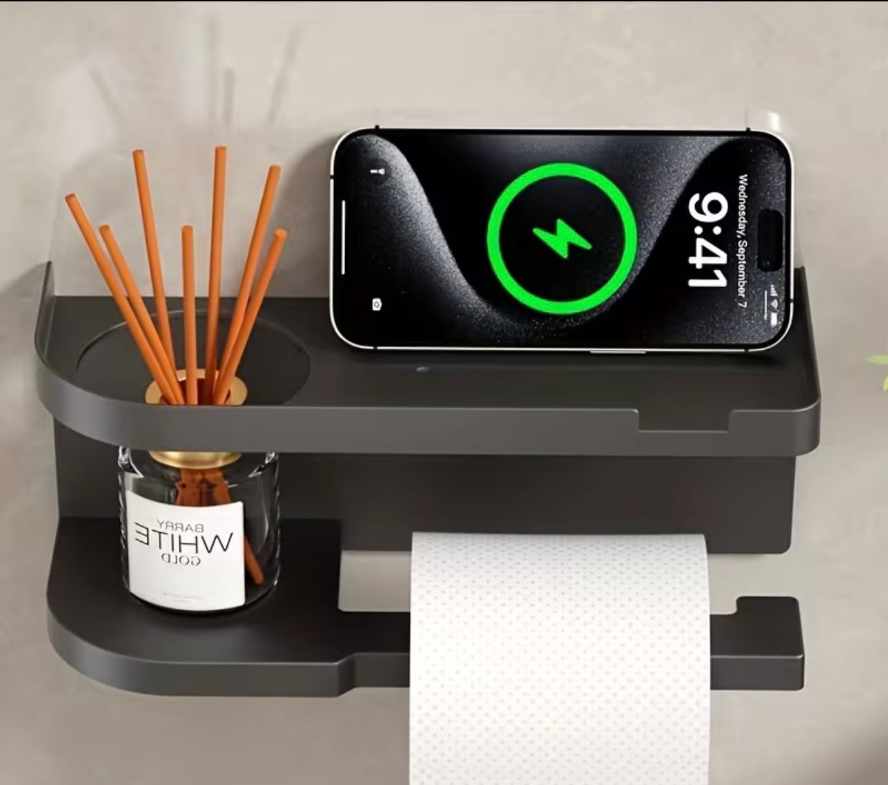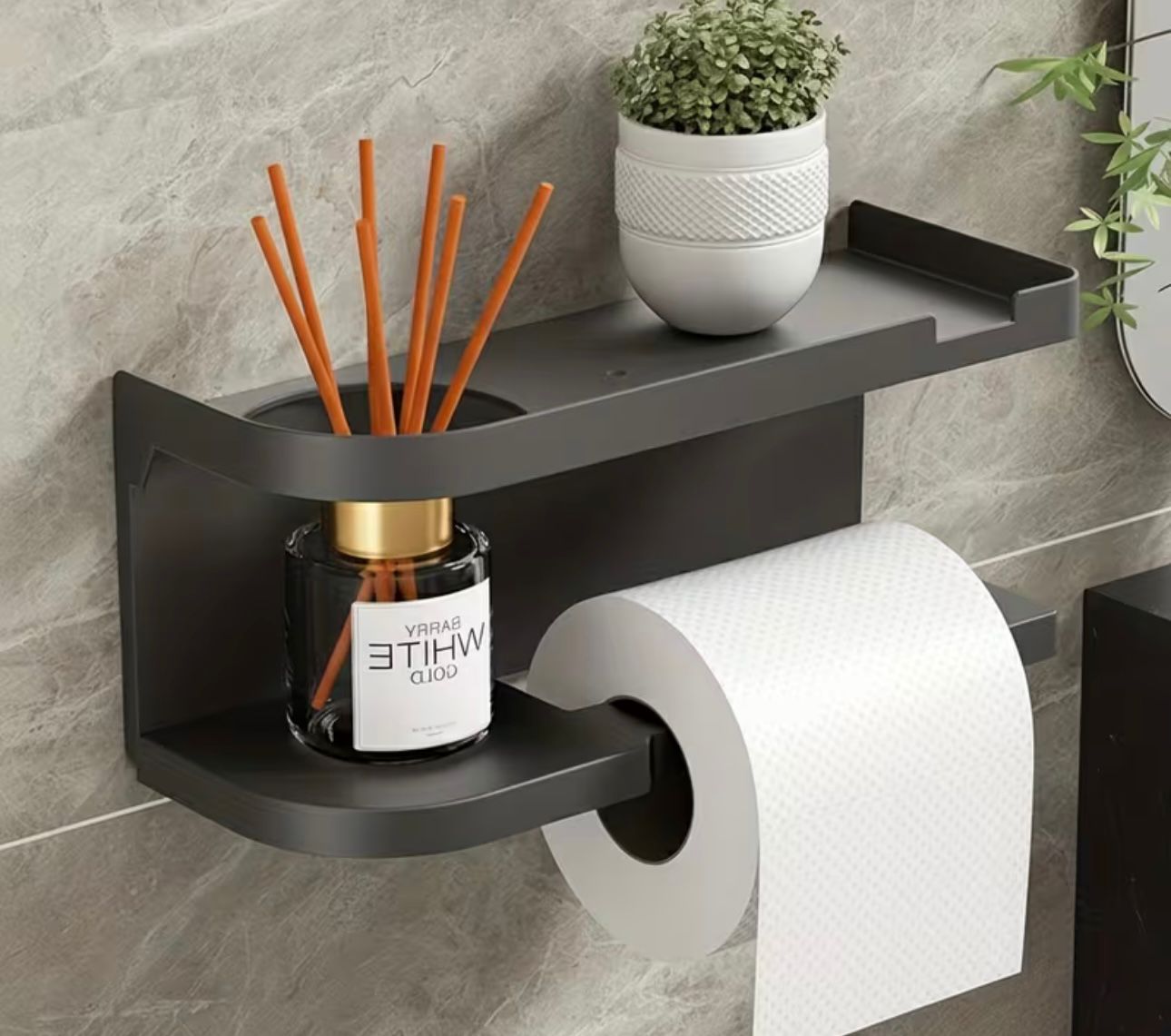 Ova elegantna zidna polica izrađena je od kvalitetnog aluminija koji je otporan na vlagu i ogrebotine. Uz držač za toaletni papir, gornja površina nudi prostor za difuzor, sapun, mobitel ili dekorativnu biljku. Jednostavna za montažu, diskretna u prostoru — a maksimalno korisna.
