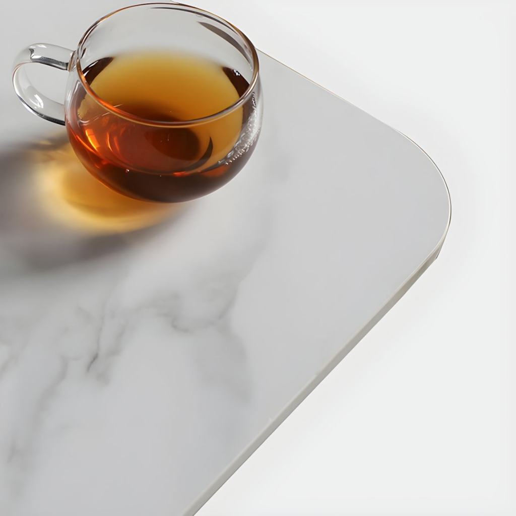 Kombinacija bijele ploče i zlatnih nogu daje prostoru profinjen izgled i moderan karakter.