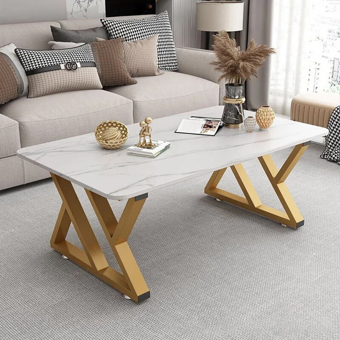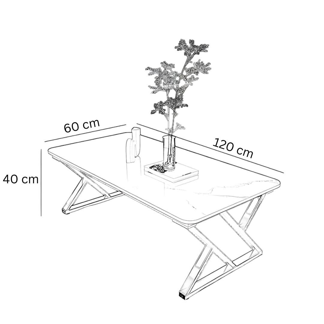 Ovaj stolić spaja moderan dizajn i praktičnost. Mramorni uzorak ploče unosi svježinu i luksuz, dok geometrijski oblik metalnih nogu pruža stabilnost i eleganciju. Idealan je kao središnji element dnevnog boravka ili komplementarni komad uz sofu.