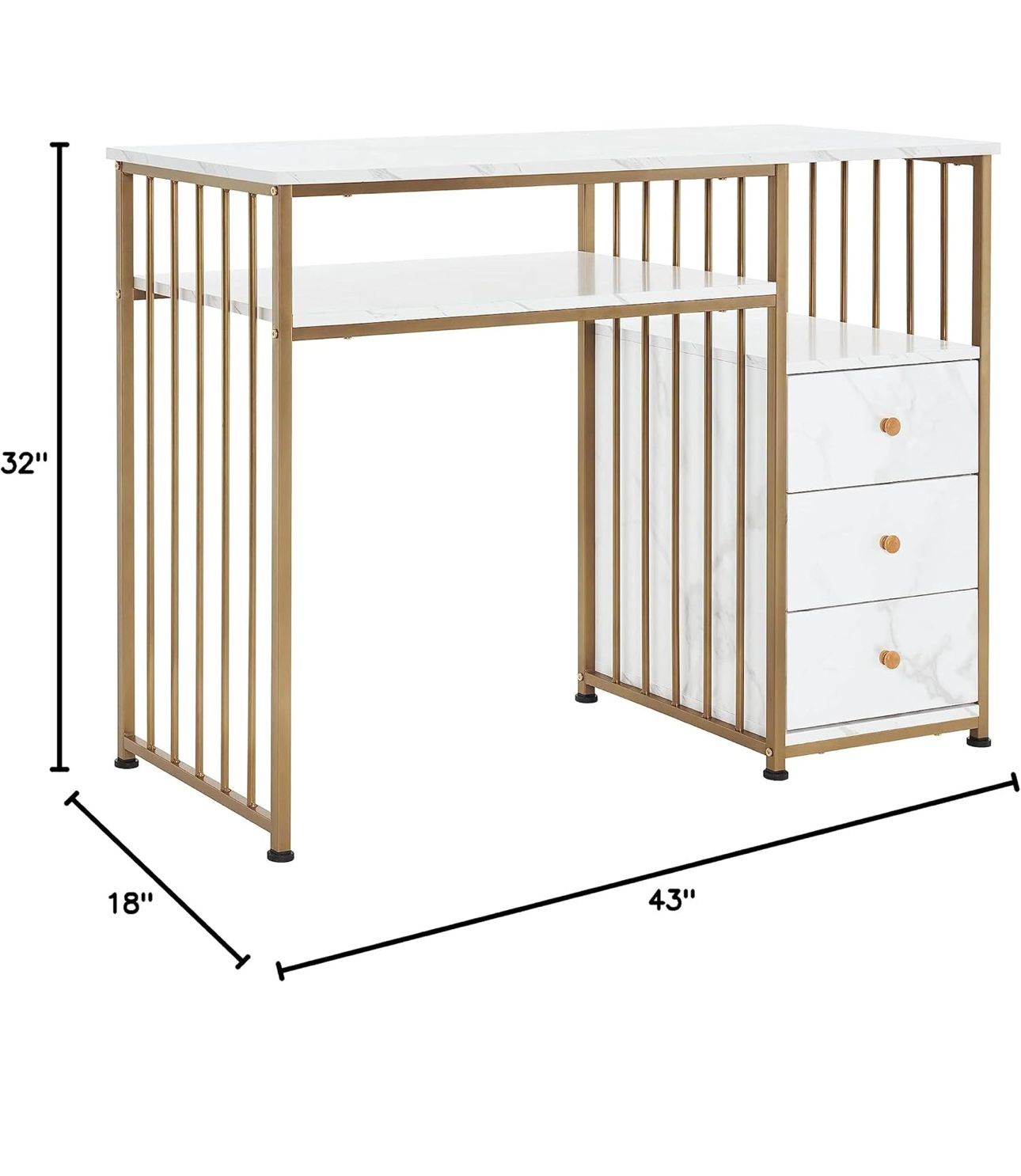 Stol za šminkanje Gold kombinira luksuzan izgled i praktičnost. Bijela mramorna ploča unosi svjetlinu u prostor, dok zlatni okvir stvara elegantan vizualni dojam. Otvorena polica i tri ladice osiguravaju savršen red i preglednost.